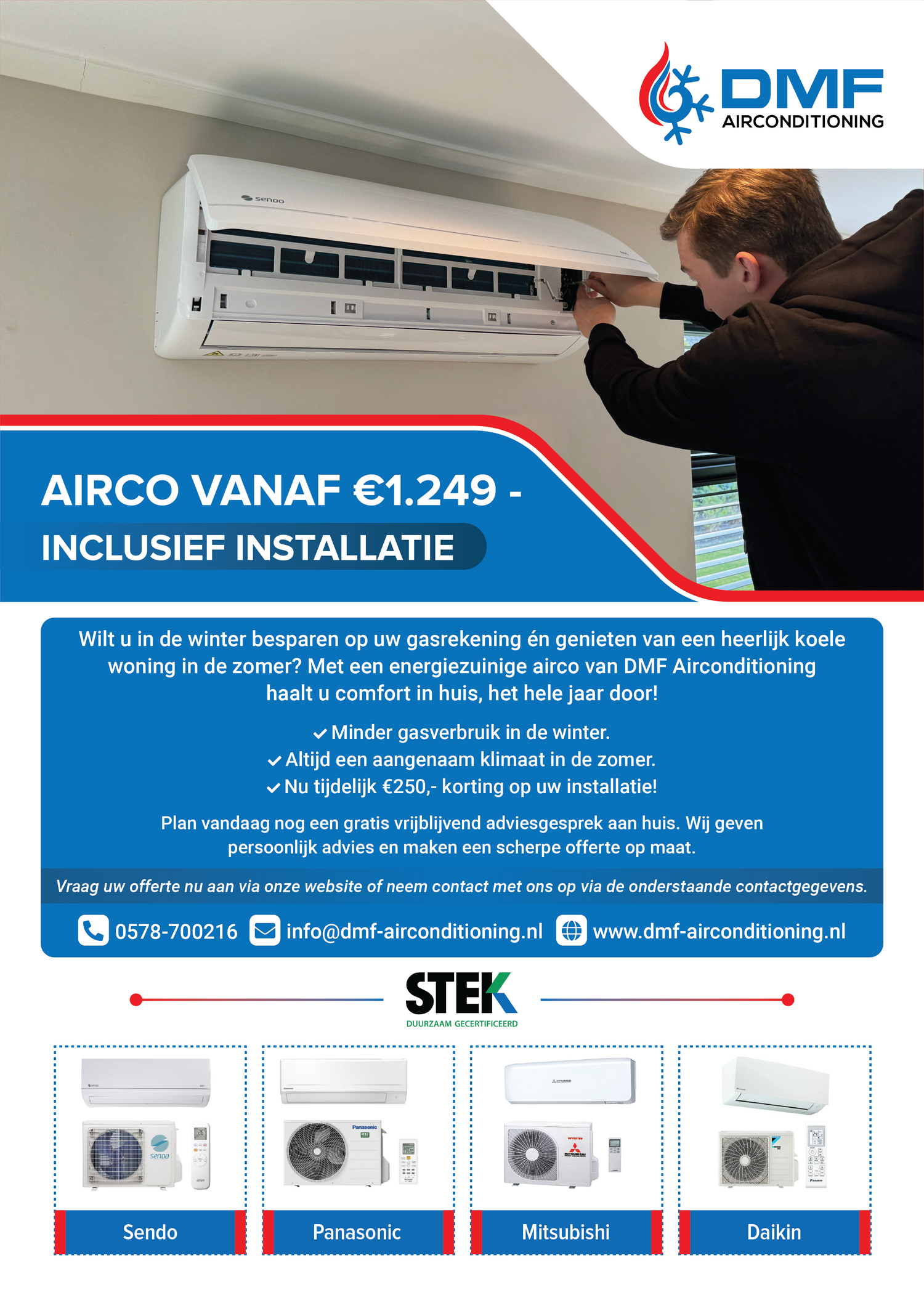 Een airco nodig in Voorthuizen? Overweeg dan het laten installeren van een airco door DMF Airconditioning. Met een airco-systeem profiteert u niet alleen van een comfortabel binnenklimaat dat kan verkoelen én verwarmen, maar ook van een zuivere luchtkwaliteit, ongeacht het seizoen.